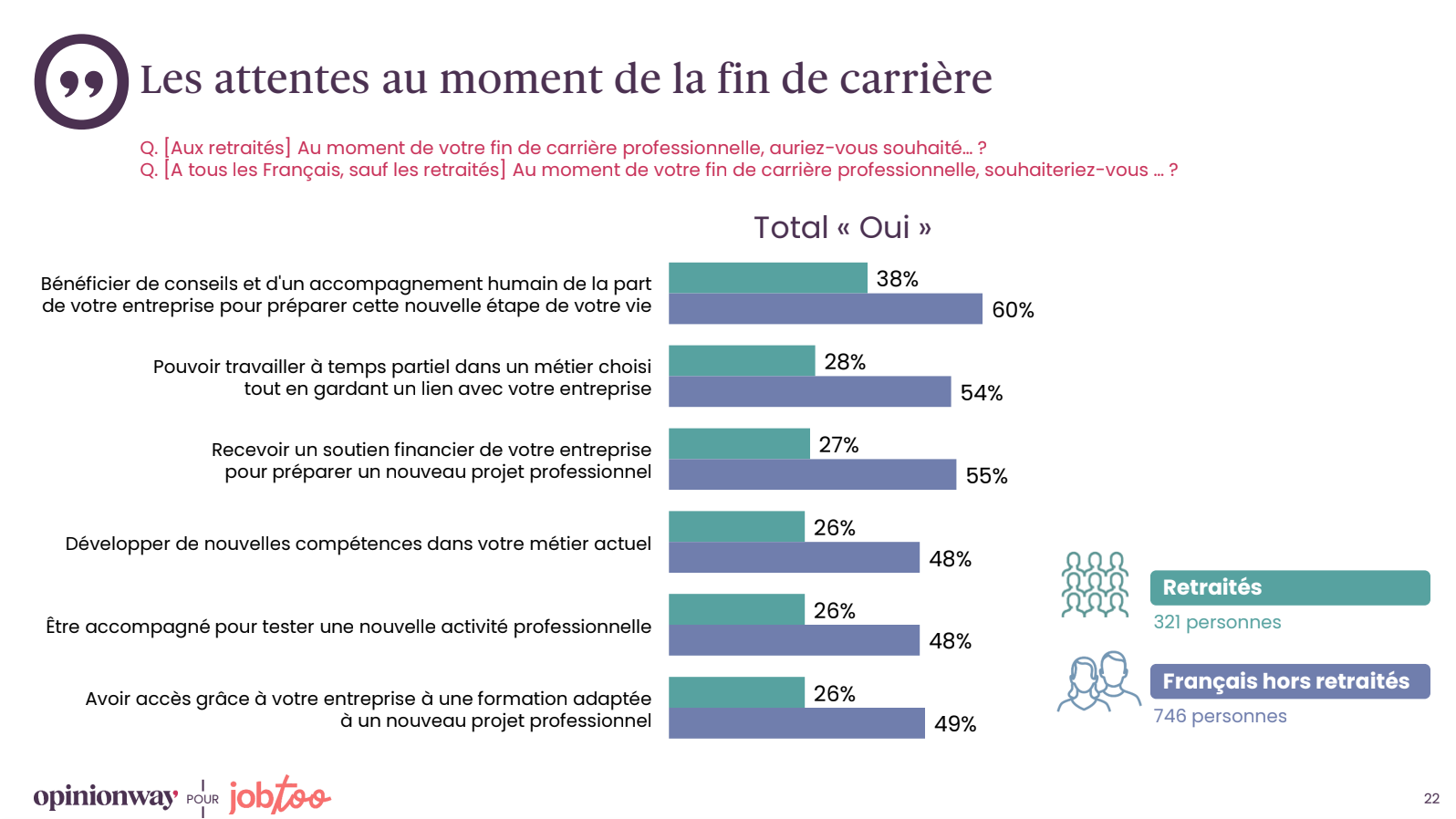 À l’heure où le ministère du Travail, de la Santé et des Solidarités déploie sa campagne « Les travailleurs expérimentés ont de l’avenir », pour valoriser l’emploi des 50 ans et plus, nous dévoilons les résultats de notre étude intitulée « Les Français et la fin de carrière : comment réinventer l’emploi des travailleurs expérimentés ? », elle vise à mesurer comment les Français vivent ou anticipent leur fin de carrière.