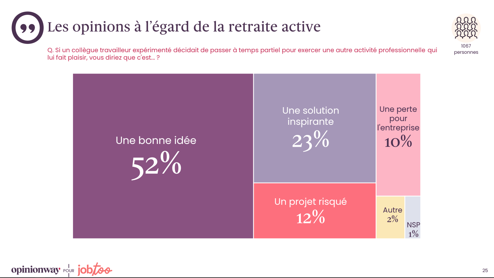 La fin de carrière professionnelle ne devrait plus être synonyme de « placard » ou de retrait passif : notre enquête OpinionWay, réalisée en exclusivité pour jobtoo, révèle que l’immense majorité des Français y voit au contraire une transition positive vers un nouveau chapitre de vie.